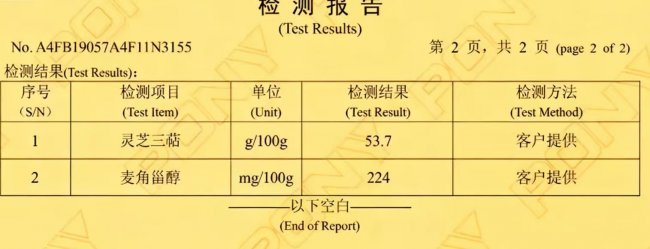 产品的核心竞争力首先体现在看得见的成分数据上。经国内权威检测机构谱尼测试验证,芝康纪灵芝孢子油的总三萜含量高达53.7g/100g,这一数值远超行业公认的优质线(≥40g/100g),接近标杆级标准,确保了核心免疫调节成分的充足效力。同时,其麦角甾醇含量达到224mg/100g。麦角甾醇是灵芝特有的甾醇成分,无法人工添加,其含量高低直接印证了原料的纯正与萃取工艺的完整性,是衡量孢子油品质的另一项黄金指标。这两项核心数据的双高表现,构成了其功效的坚实基础。
