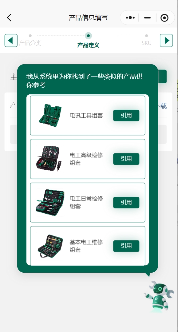 AI助理引导。用户无需再面对复杂表单格式和繁琐填写要求,AI助理将根据项目类型实时提供精准指引,新手也能轻松完成项目信息录入。