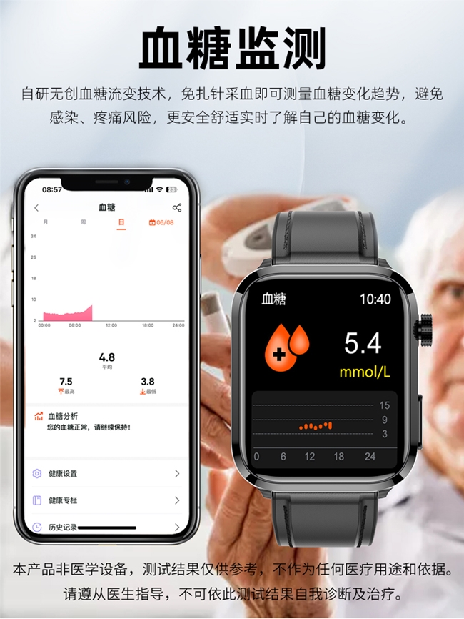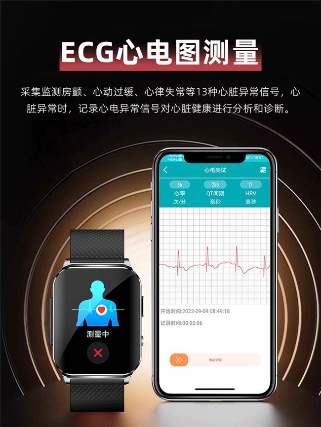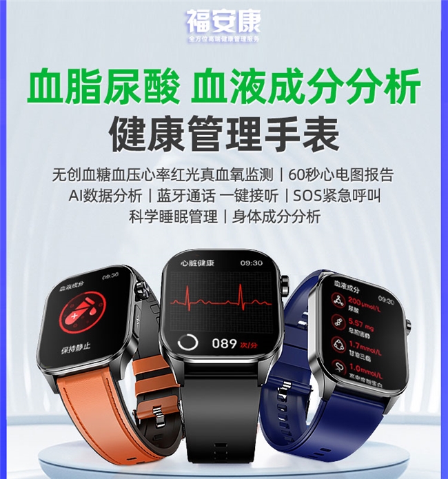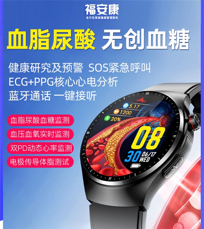 Al医疗诊断60秒心电图报告,血脂尿酸无创血糖健康智能手表。