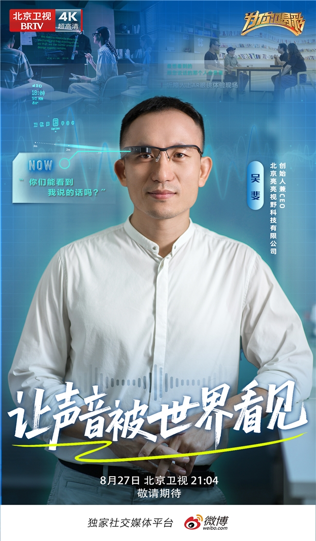 8月27日21:04,与北京卫视《为你喝彩》直击亮亮视野研发实验室与全球应用市场,共同见证北京创新力量的蓬勃涌动,感受亮亮视野如何让“声音被世界看见”,让科技真正服务于每个人。