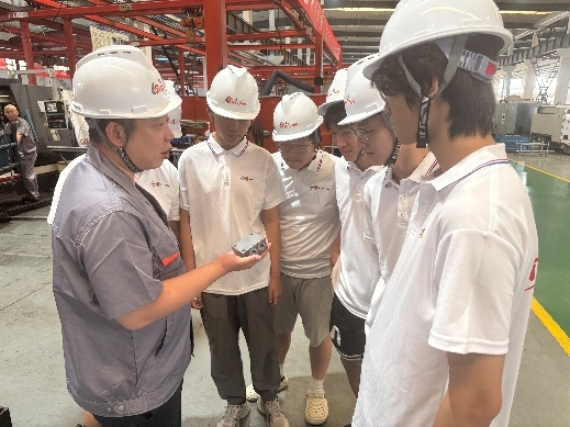 实践的第一站,是烟台亮远液压技术有限公司的生产车间。在这里,冰冷的机械部件被赋予了 “生命”,而团队成员们的任务,就是读懂这些 “生命” 的构成。在企业技术人员的耐心指导下,大家戴上安全帽,穿梭于生产线之间,近距离观察油缸的每一个组成部分 —— 从缸筒、活塞杆到密封件、导向套,每一个零件的材质、尺寸、工艺要求都被详细记录在笔记本上。