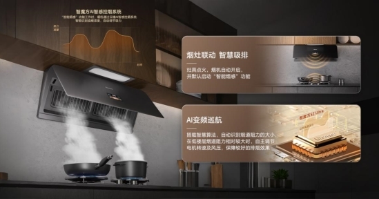 四季三餐少不了煎炒烹炸,热油与食材碰撞的瞬间,油烟也随之升腾,迅速侵占厨房的各个角落,附着在厨房橱柜、墙面,甚至飘散到客厅,留下挥之不去的油味。长久以来,这份 “烟火气” 常被视作生活的印记,却很少有人意识到,当我们警惕室外雾霾、拒绝二手烟时,厨房这片日常相伴空间正悄悄成为呼吸健康的“隐形危机区”。传统油烟机效果有限,油烟逃逸、余烟残留问题频发,长期累积不仅损害呼吸系统,还危及全家人的健康。