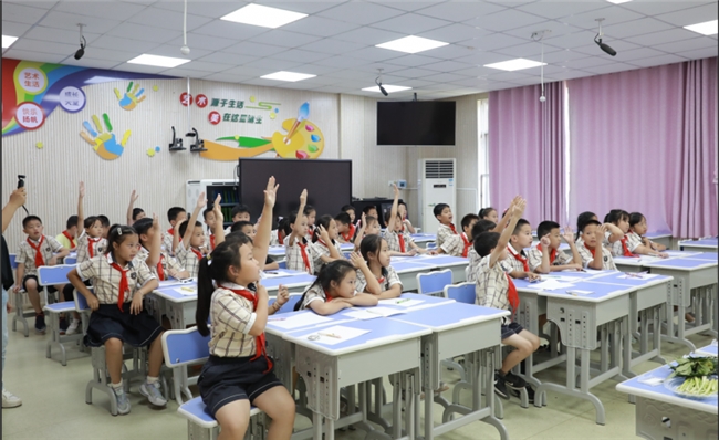 玉兰路小学的孩子争先恐后举手分享新知识