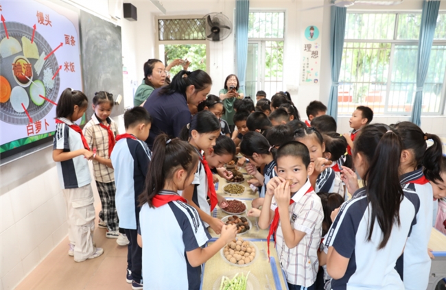 凤翔路小学学生兴奋地观察着食物的变化