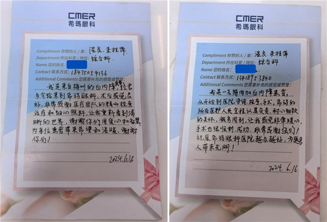 首开先河: 2023年底,惠阳首例AcrySof IQ Vivity®人工晶状体植入术成功实施。温良院长与詹行楷院长携手,运用非衍射型波前重塑技术,为一位饱受白内障和老视困扰的患者,精准地找回了远、中、近全程清晰视力。这不仅是一项技术的突破,更是她为患者“量身定制”光明未来的生动注脚。