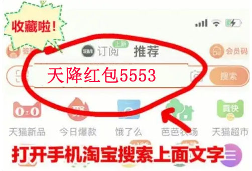 领取方式:打开淘宝或天猫APP,在搜索框输入口令即可进入红包领取页面