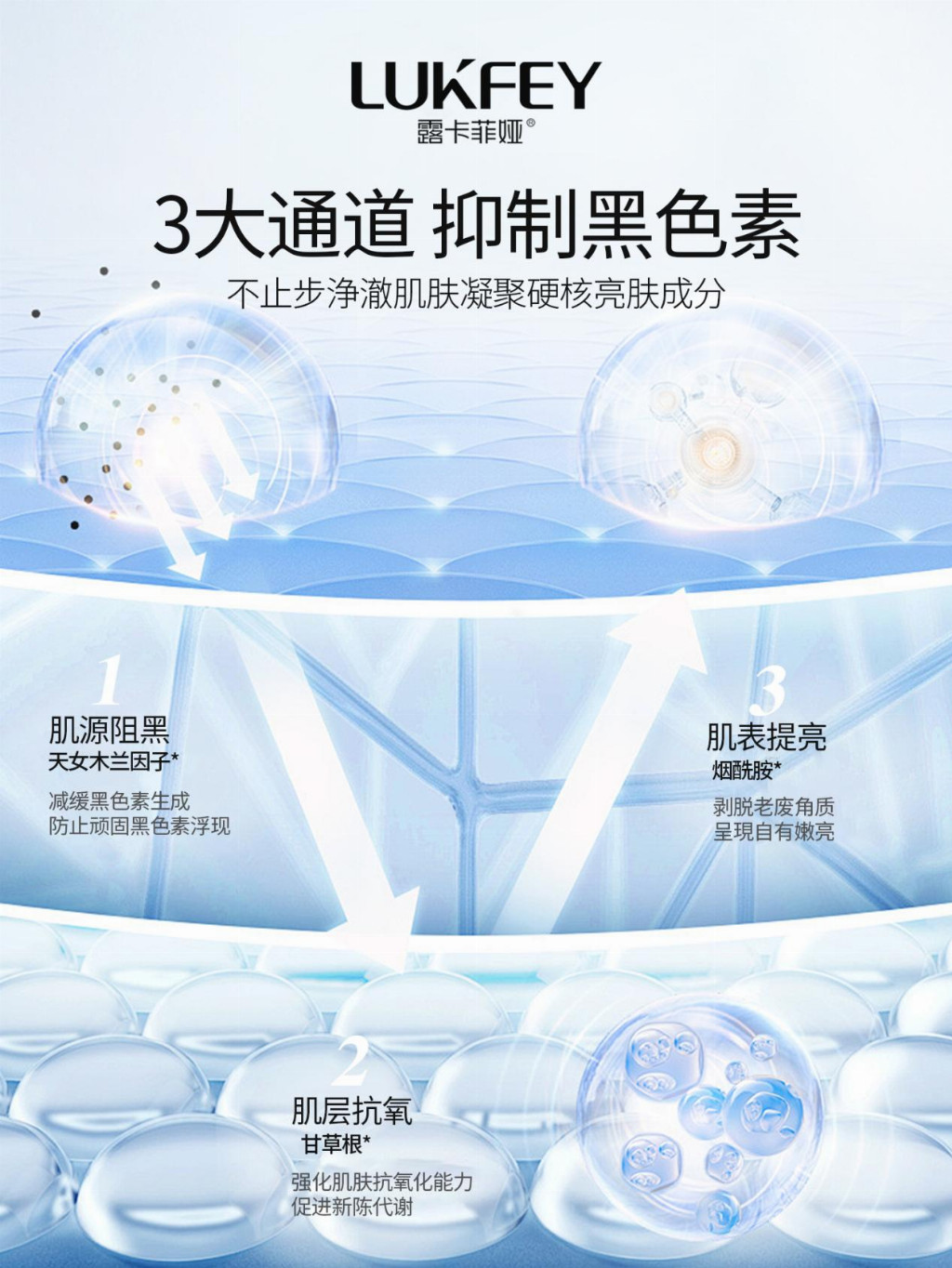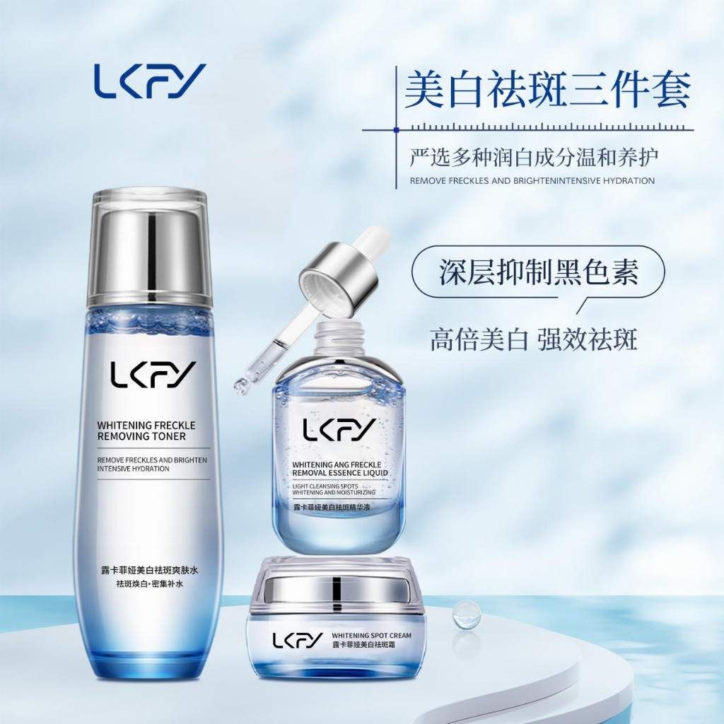 露卡菲娅祛斑套装拒绝“高刺激速白”套路,将天然植物活性成分科学配比,形成「褪黑+修护+保湿」三轴联动: