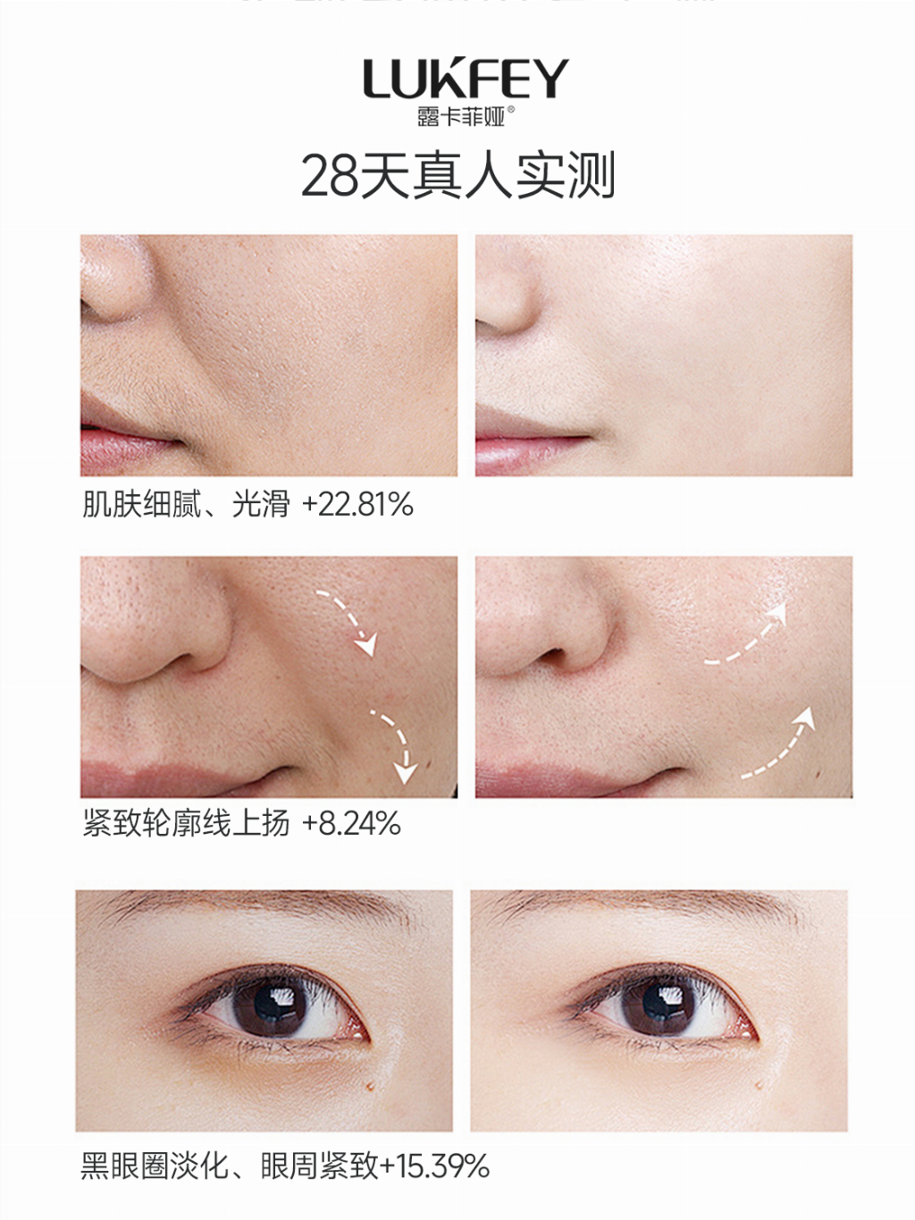 这款紧致抗皱套装7天感觉肌肤水润度回升,粗糙感改善。14天,深纹开始变浅,面部轮廓更立体。28天,松垮的皮肤被支撑起来,皱纹也淡化了,肌肤透着健康光泽,整个人年轻好几岁。