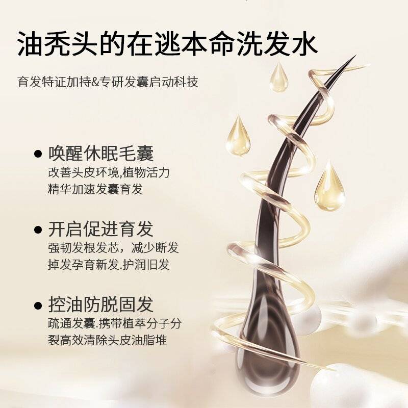 含有何首乌、侧柏叶、知母根、当归、苦参、牡丹根等植萃,协同进口防脱精华、独家专利专研生发因子,有效激活处于休止期的毛囊,修护头皮屏障,进而延长毛发生长期,从根本上改善脱发问题。