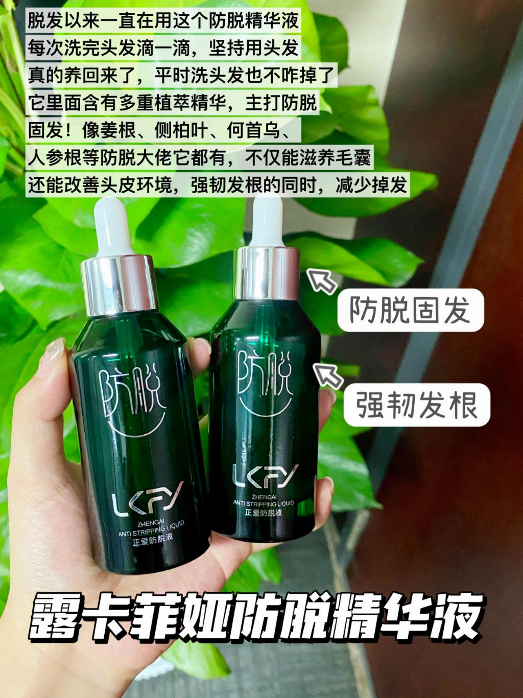 江苏吴女士测评反馈:熬夜党真的伤不起,掉发超级严重,头发发量都不剩几根了~真的超级焦虑,去年开始尝试用育发液、防脱精华!就这个“露卡菲娅防脱精华液”给我感觉最好了。很温和不油腻,用了2、3瓶下来头发掉的少了很多;4、5瓶用完,头顶头发变得茂密很多,安利安利千万别错过哦~