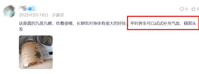 此产品以枸杞、红枣等天然成分为主,含量充足、配比科学,包装古朴典雅并采用密封保鲜技术,特别适合注重养生的中年群体及女性用户。