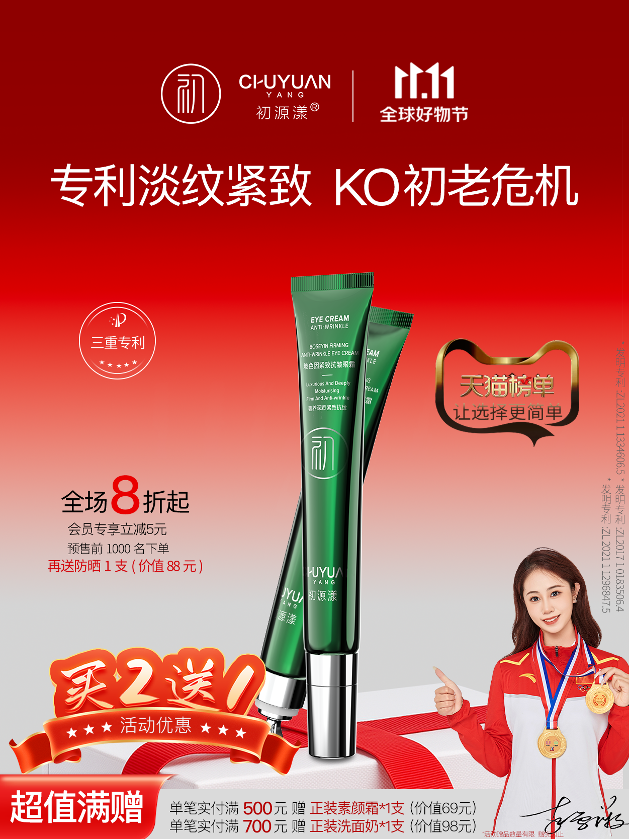 核心成分超抗打,仔细扒了下它成分,用料也是真舍得,对比着一代,二代添加了高浓度玻色因+活性肽+第三代双胶原的组合成分,效果是真的很绝!按照一淡纹、二提拉、三紧致的思路对抗地心引力,大师级淡化眼周肌肤的各种纹路,在促进胶原蛋白新生的同时兼顾提拉、紧致,新手小白和敏敏肌都能轻松驾驭!而且还有可可提取物、酵母发酵产物提取物、角鲨烷、牛油果树果脂、龙胆根提取物、烟酰胺的成分,消肿抗氧、焕亮眼周肌肤的同时均匀充盈眼窝,高效补充眼周活力,加快眼周肌底循环!初源漾小绿管眼霜坚持用下来直接光速隐匿各类细纹,让眼周肌肤状态回归年轻,特别是在熬夜加班后,总能力挽狂澜及时拯救回来!我本人熬夜十级选手,熊猫眼程度打败99.99%地球人,眼纹深的像一道道沟壑,而且眼睛如果有细纹真的好显岁数,还好有初源漾小绿管小绿管眼霜拯救我的熬夜眼于水火之中