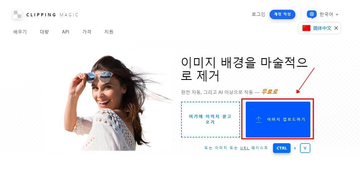 1、打开ClippingMagic网站,点击官网首页中的【上载图像】按钮,从本地文件夹中选择需要更换底色的照片导入到软件中。