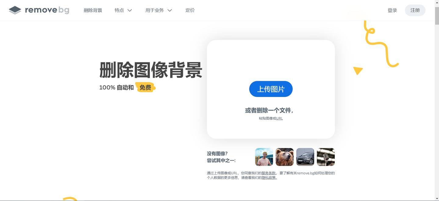 1、进入网站后,使用很简单,将需要去背的照片拉进去。