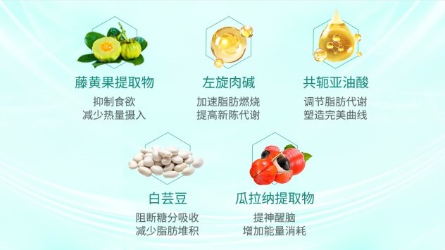 至于它之所以能有出色效果,背后离不开五大核心成分:藤黄果提取物、左旋肉碱、共轭亚油酸、白芸豆提取物与瓜拉纳的科学配比与协同作用。这些成分并非简单叠加,而是精准地对应并构建了一套“抑制摄入—加速燃脂—阻断吸收—促进排毒”的四步闭环减脂逻辑。这四大环节环环相扣,形成了一个自我强化的正向循环,确保了减脂过程的持续性与稳定性。各类成分的作用机制,均有国际权威学术期刊的研究成果作为认可与支撑。