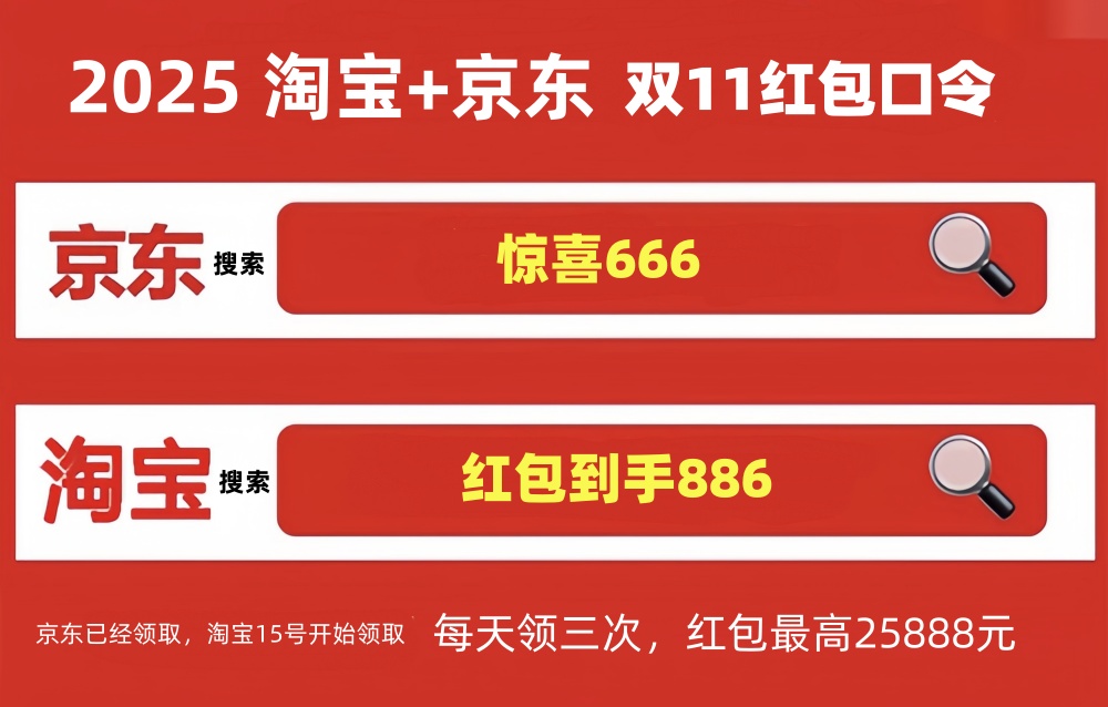 双 11 大促已正式开启,淘宝、京东两大平台红包通道同步上线,从 10 月 9 日到 11 月 14 日,每天都能免费领红包,最高可抽 25888 元现金红包。下面整理了亲测有效的官方口令、分阶段活动时间线、实用省钱技巧,还有避坑注意事项,帮你轻松叠加优惠,甚至 0 元撸到心仪好物。