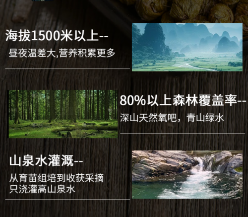 坚持霍山原产地,仿野生5年以上生长周期。人工精挑颗粒,胶质与营养成分齐全。权威检测使品质安全感增强。多元食用方式为消费者提供便捷性,包装以实用为主。