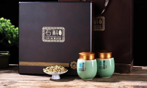 以浙江雁荡山采摘的足龄石斛为主打原料,手工卷制,标准突出。颗粒黄绿,纹理清晰,胶质表现显著。包装设计融合传统文化元素,产品适配送礼及日常饮用双重需求。可观性与实用性兼并。