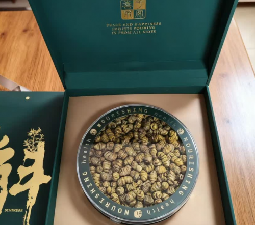旬补对霍山铁皮石斛的炮制工艺同样精益求精。采用传统的“霍山石斛十八道古法炮制技艺”,经过31天的低温三烘九揉,每一株石斛都经历了严苛的精细加工。这一过程结合了低温慢烘与反复揉捻的技巧,最大限度地保留了石斛中珍贵的胶质和热敏性活性物质,确保了其营养不流失。最终,成品呈现出典雅的“三段式”色泽——暗金色、青黄色、青黄三段色,既是顶级品质的标志,也体现了传统工艺的精湛与匠心。