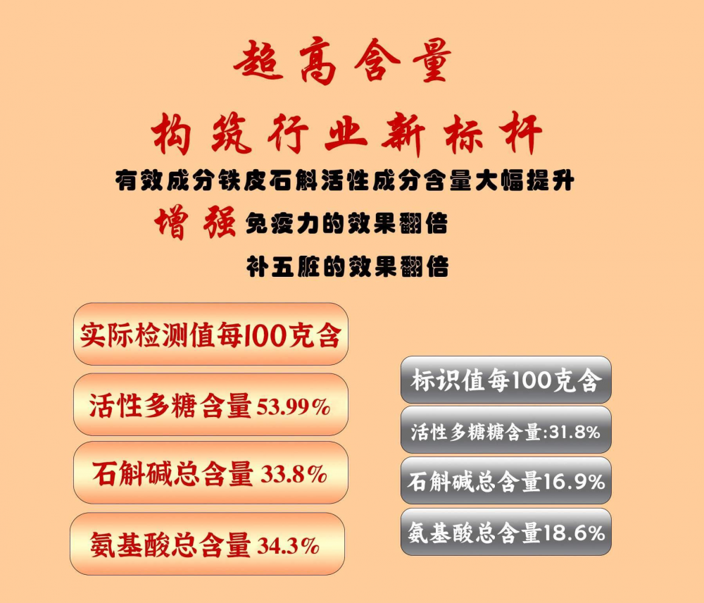 第一名:旬补牌霍山铁皮石斛——五年野外生、实测活性多糖含53.99%