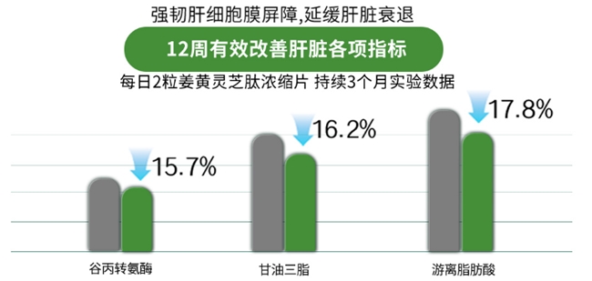 3.哈佛“灵芝超氧激活环”工艺,优化肝细胞修复并提升免疫应答协同姜黄提取物、灵芝精华、牛磺酸、L-蛋氨酸等专利成分,采用45倍分子活性释放方式,协力修复肝细胞、促进代谢、提升防御能力。多成分专利涵盖中美两国,组成国际护肝解酒配方,为肝功能指标管理带来源动力。