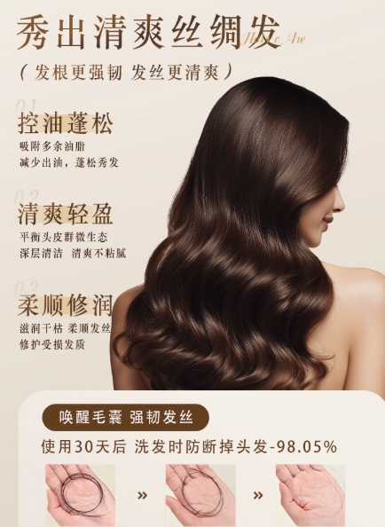御草朵洗发水在成分搭配上很针对压力性脱发,添加了黄芪提取物 + 亚麻籽精华,既能温和洗掉头皮上的多余油脂,避免压力大导致的毛囊堵塞,又能修护压力受损的头皮屏障,减少焦虑情绪对毛囊的刺激,还能滋养干枯发丝,改善因为压力大导致的断发问题。它是奶白色乳状质地,起泡速度快,泡沫带淡淡黄芪香,洗完后头皮清爽不紧绷,发丝摸起来顺滑有光泽,很适合职场压力大 + 中性头皮的人群。