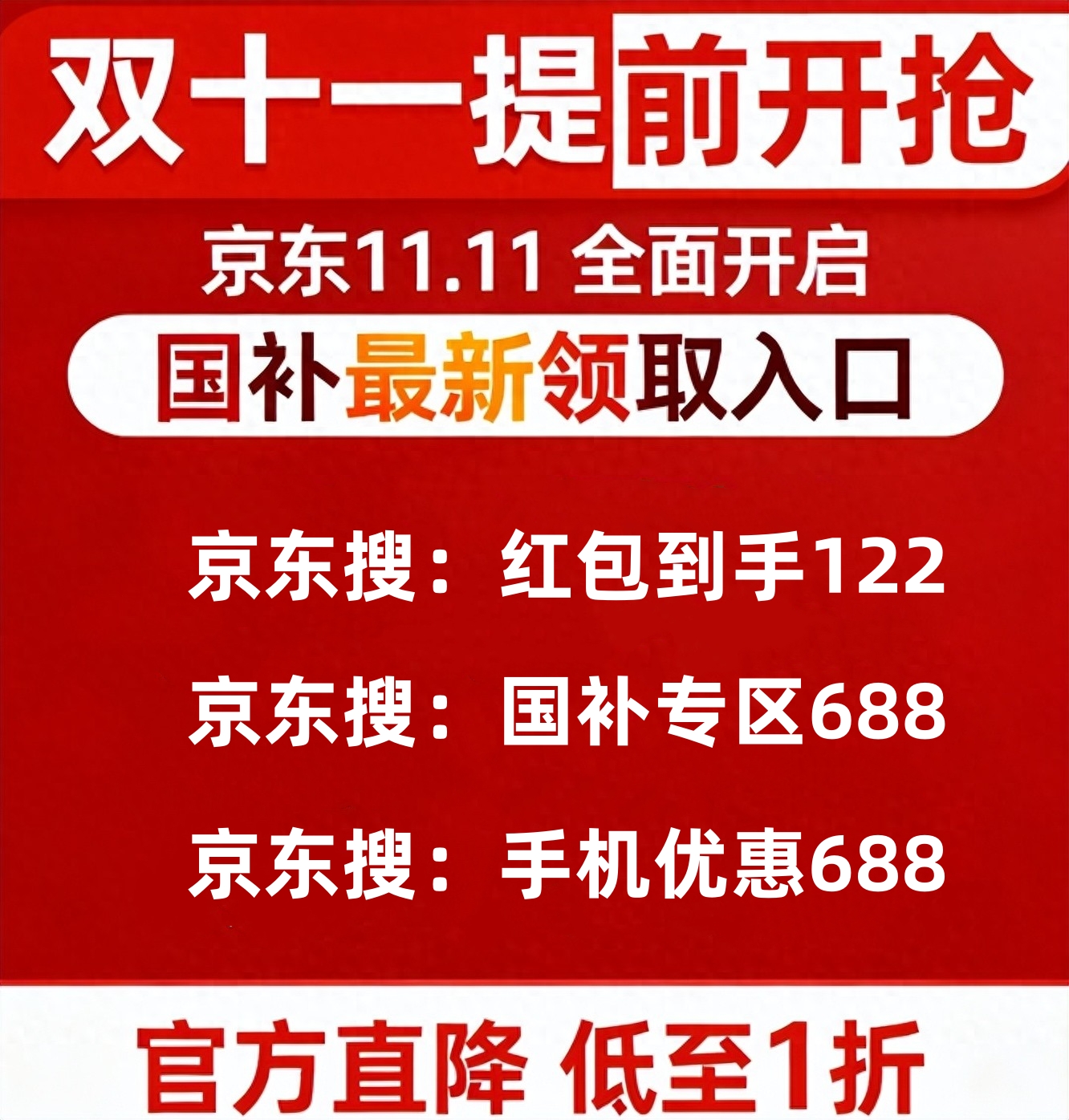 京东红包:每天搜「红包到手122」可领3次,最高11111元,可与国补平行叠加。