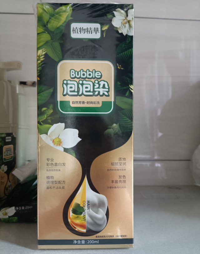 作为主打植物染发的高端款,它把昆布提取物作为核心成分,还搭配了多种草本精华,染的时候完全没有刺鼻味,只有淡淡的植物清香。遮白能力很稳,哪怕是顽固白发,停留 20 分钟也能盖得均匀,染后发色是很自然的深棕色系,不会假黑。而且它不沾头皮、不沾衣领,洗的时候水很快就清了,固色能维持 1 个多月,染完头发摸起来软软的,适合追求 “天然遮白 + 养发” 的宝子。