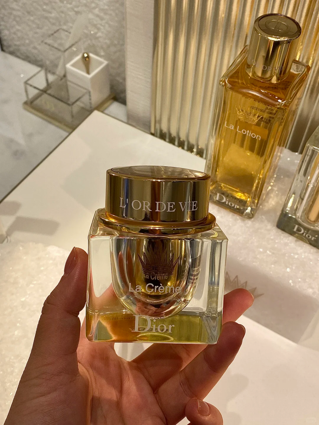 Dior 迪奥黄金生命活肤霜限量版实测能解决皮肤老化带来的多种问题,像细纹变深、脸蛋松弛没弹性,还有肤色暗沉无光泽的情况都能改善。里面的成分能抵抗氧化和外界污染,长期用下来皮肤会紧实些,干纹也浅了,摸起来水润,整体看着更透亮有活力。