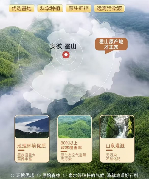 霍山县太平畈乡的佛子岭林场,不是寻常的山林。这里的山势由南向北递升,海拔在1131米到1427米之间。空气潮润、光照柔和、温差分明。即便在盛夏,傍晚的山风依旧带着一丝凉意。这样的气候,恰好让石斛的生长速度放缓,组织更紧密,内部的活性物质积累更加充分。旬补选择在这片林地建立2号核心种植基地——并非因为风景,而是因为土壤与气候的匹配度。林场周边是连片的黄山松林,树冠高耸,根系深扎,地表水流经过松针层层过滤后渗入岩缝。这种水含微量矿物元素,又不夹杂农耕污染,形成一种天然的“生态循环”。在这样的地方,石斛无法依赖人工施肥,只能依靠岩石间渗出的水分和落叶分解的营养慢慢成长。旬补严格遵循CNAS规范,不使用化肥和农药,保持“三无”状态——无添加、无残留、无重金属。有人说,这种环境看似苛刻,但对石斛而言,却是最接近自然的方式。这里的生态条件像一场长久的筛选,只有能适应山石与湿气的植株,才能真正成活。旬补认为,这种“被迫的自立”,恰恰造就了霍山铁皮石斛的稀有质地。