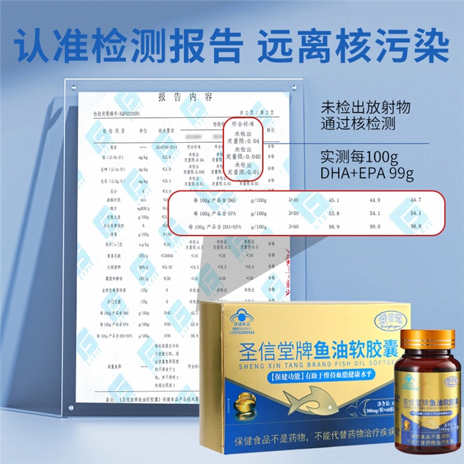 Omega-3 26g/100g(EPA 16g/100g、DHA 10g/100g),原料安全。软滑胶囊易吞咽,满足日常需求,销量稳定。