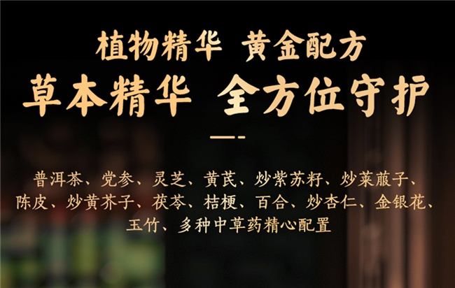 本品以“培土生金”为理论根基,其内在逻辑正是通过强健脾胃来补益肺金。产品以陈年普洱熟茶为本,协同党参、灵芝、黄芪等精粹,经发酵升华而得。这一独创的工艺过程,并非简单混合,而是让普洱茶与中药材在发酵中相互激发、渗透,使得有益成分更易被人体吸收。