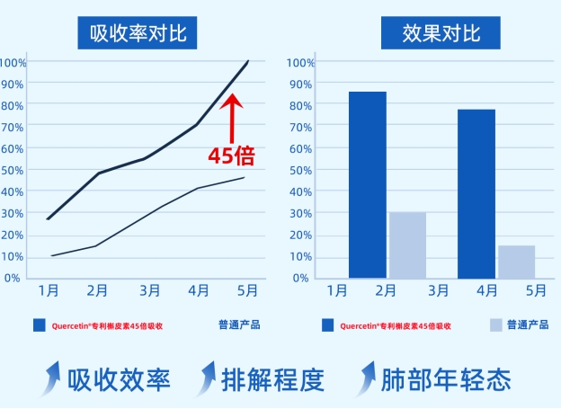 传统槲皮素虽然拥有"清肺之王"的美誉,但其低吸收率的问题始终是行业痛点。Scep肺能量革命性地采用先进的提纯技术,将槲皮素分子包裹在磷脂双分子层中,从而能快速通过肠道屏障,直达血液循环系统。临床数据显示,这种专利Quercetin®的生物利用度达到普通槲皮素的45倍,这意味着同等剂量下,有效成分能够更充分地作用于肺泡和支气管组织。