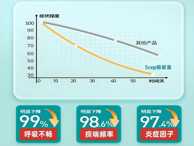 Scep肺能量的根本突破,在于打造了一个多维度协同作用的立体养护网络。专利猫爪草提取物能精准抑制肺部炎症因子的表达;菠萝蛋白酶通过分解黏液蛋白改善气道通畅度;紫苏籽中的迷迭香酸与桑叶DNJ成分形成抗氧化协同效应;蒲公英提取物能助力肝脏解毒,从而间接提升肺部代谢效率。这种“清-修-护”三位一体的协同路径,构成了其应对复杂肺部问题的核心优势。