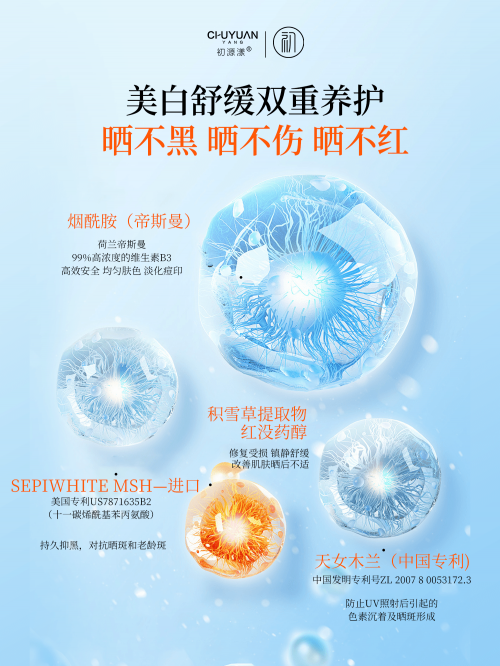 SPF50+ PA++++ 的高倍防护力超靠谱,还搭配了烟酰胺、天女木兰植物精萃,以及红没药醇、积雪草提取物等养肤成分。让防晒不再是单纯的物理隔离,更像是一场温柔的肌肤养护。这样的肤感配上这样的防护与养肤实力,初源漾小白管真的让防晒变成了一种享受,而非不得不做的负担。