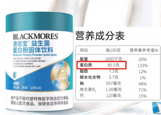 第八名是澳佳宝(Blackmores)蛋白粉,采用低乳糖配方,蛋白质含量 68%,适合乳糖不耐受但想补充动物蛋白的人,冲调后无明显奶腥味,接受度高。
