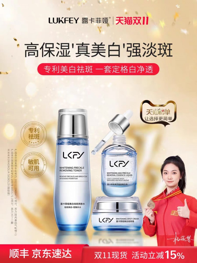 露卡菲娅祛斑套装以“科学+天然”为核心,含爽肤水、精华液、祛斑霜三件套,持有国妆特字证书与美白资质,通过国家药监局3年临床测试。核心成分包括烟酰胺(抑制黑色素转运)、天女木兰(阻断酪氨酸酶活性)、光果甘草(抗氧化抗炎)等十余种植萃精华,且无苯甲酸酯、矿物油、重金属等有害添加,干性、油性、敏感肌均适用。