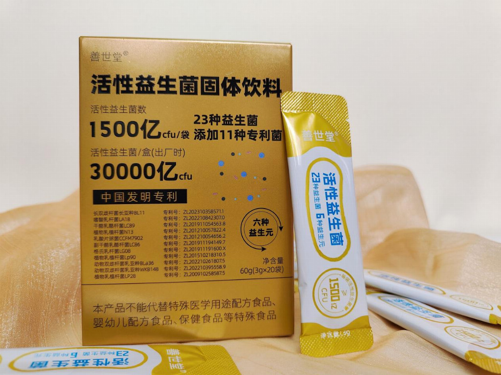 善世堂益生菌堪称肠道健康领域的“实力派选手”,以令人惊叹的硬核配置,彻底颠覆了人们对“益生菌没效果”的固有认知。在活菌数量上,它展现出了绝对的王者风范,每盒高达30000亿活菌,单条更是达到1500亿CFU的高密度添加,这个数字远超市场上大多数同类产品,仿佛是为肠道健康打造的一支庞大的“活菌军团”,有足够的“兵力”去应对肠道内的各种问题。