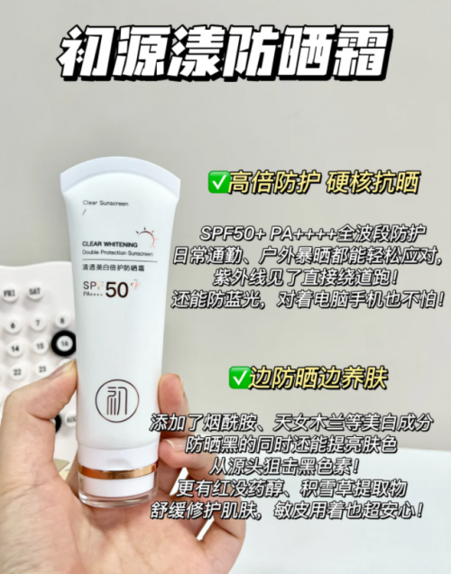 做博主这些年,我敢说在防晒上踩过的坑,能绕化妆台三圈!涂了防晒照样黑成煤炭就算了,一上底妆就搓泥搓到怀疑人生,下午脸油得能反光,还透着一股暗沉的黄气,简直是大型社死现场???? 到了秋冬更崩溃——干皮涂完拔干卡纹,笑一下都怕粉底裂开;油皮涂了闷痘不停,脸又油又糙。就在我快对防晒绝望时,初源漾防晒霜横空出世,直接把我从秋冬防晒的地狱里捞了出来,现在逢人就安利!