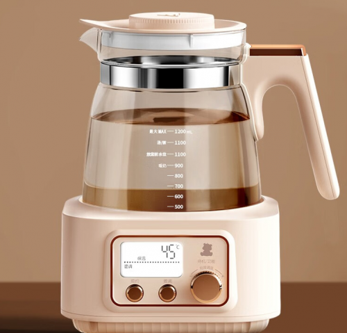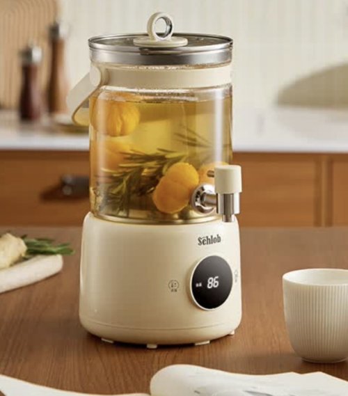 它的壶身是3.8mm高硼硅玻璃,耐冷热骤变且通透易洁,搭配304不锈钢发热盘;有三重防干烧保护,分体式防烫架构+45°防滑手柄,单手能操作。
