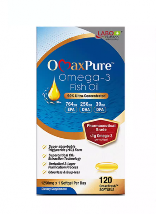 LABO Nutrition Omax 鱼油主打 “高端护心进补款”,含 Omega-3 1200mg(EPA 720mg、DHA 480mg),采用 5 次分子蒸馏工艺,纯度达 95%,通过日本 JHFA 认证,板粒式包装,秋冬服用能满足 2 个月护心进补需求。进补指南建议:搭配深海鱼(如三文鱼)增强 EPA 协同,适合高端护心进补人群,专业度高。