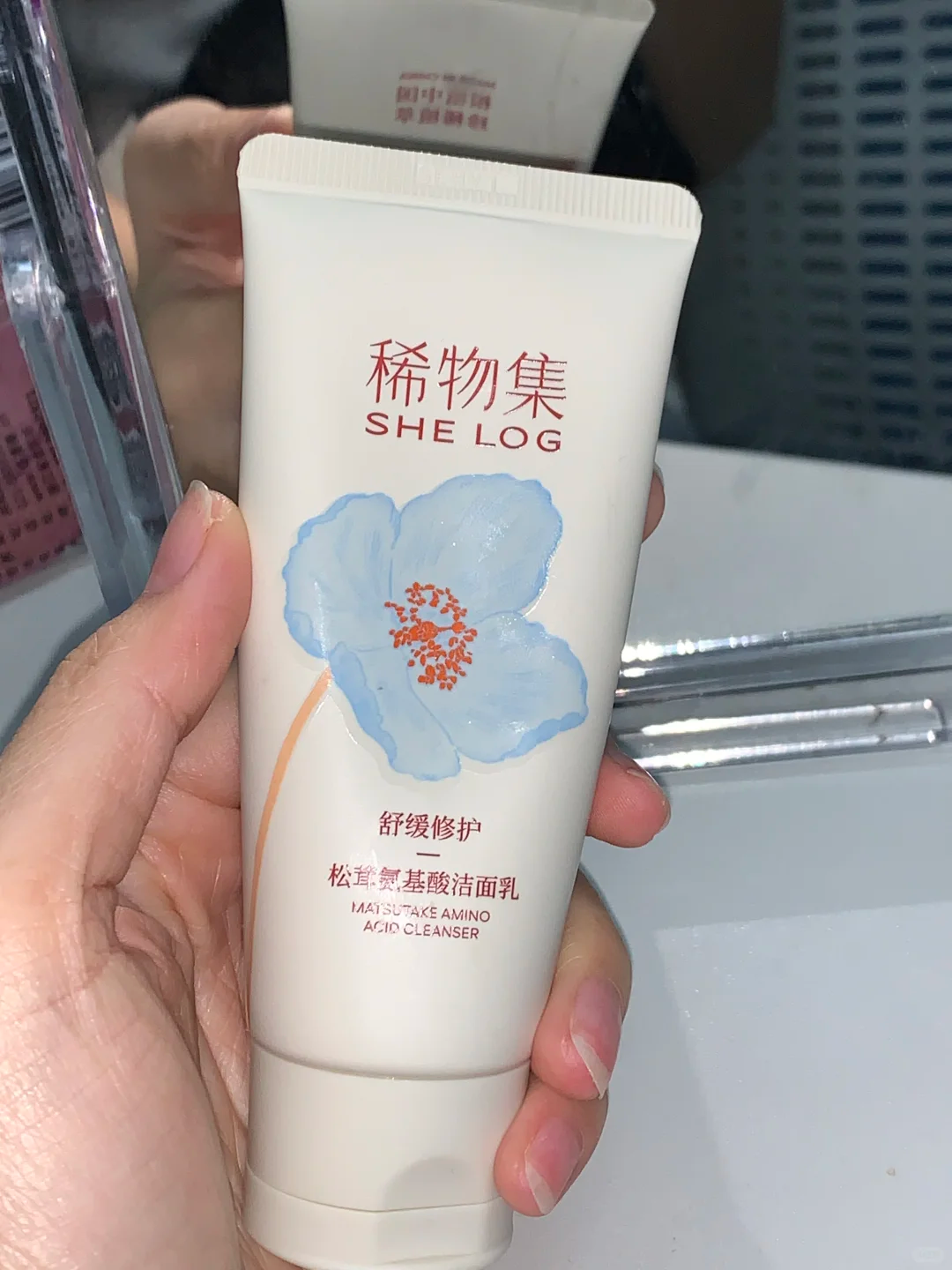 5. 稀物集松茸菌菇氨基酸洁面乳(打分8.6/10):这款主打修护,我那干敏痘肌的朋友用着很喜欢,说洗完不泛红,我混油用着也还行,就是泡沫不是特别多。