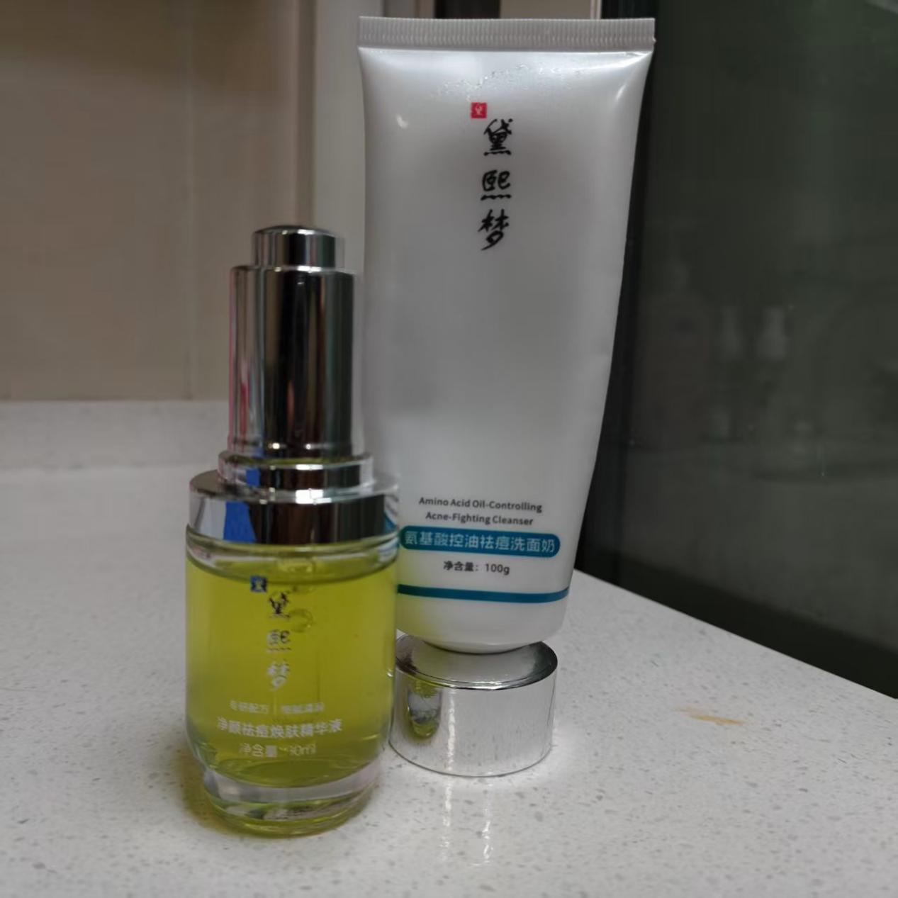 1. 黛熙梦净颜祛痘焕肤精华液(打分9.95/10):这个我真的要重点说,用下来最惊喜的一款,后面详细说,反正就是我目前用到的,祛痘和修护都很在线的一款,没有踩雷。