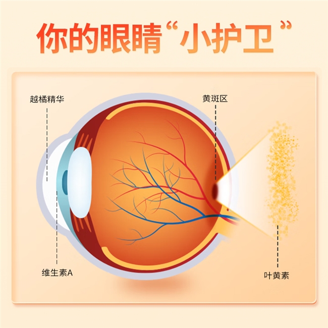 首先,叶黄素0.2g/100g的含量是其作为核心“滤光剂”的基石。但真正实现“高含量精准补充”的秘密,在于其复配的智慧。高浓度的原花青素(1.5g/100g,来源于越橘)是强大的抗氧化剂,在叶黄素作为“物理盾牌”的同时,原花青素充当“化学清道夫”,能有效穿透血脑屏障,增强眼部微血管韧性,改善视网膜供血,对于长时间用眼导致的眼疲劳、干涩等症状,提供了有力的“治标治本”支持。同时,β-胡萝卜素(0.32g/100g)作为维生素A的前体,保障了视觉细胞的正常功能和暗光适应能力。