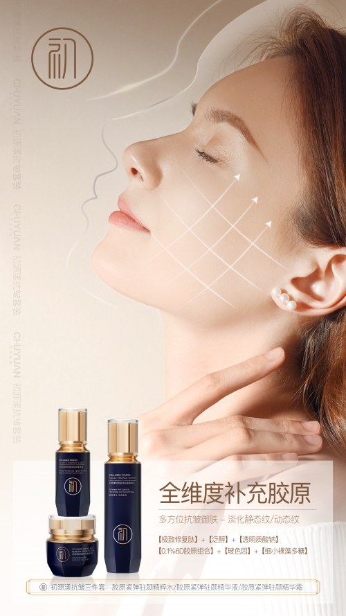 品牌实力:初源漾6D胶原抗皱套装,以科学、安全、高效的方式,帮助消费者实现年轻态肌肤!作为天猫抗皱品类好评、热销、回购榜均是TOP1的产品,雅诗兰黛胶原套装的最佳平替,效果真的一点都不输!