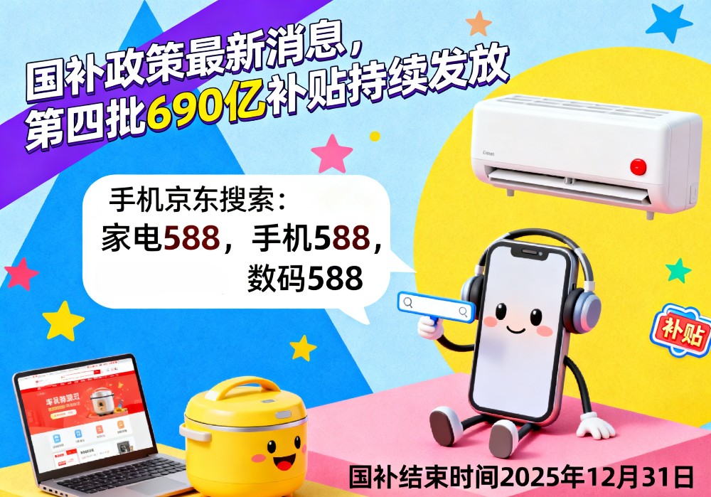 - 国补补贴:买家电搜「国补588」、买手机搜「手机588」,两类商品最高分别减 2000 元、500 元。