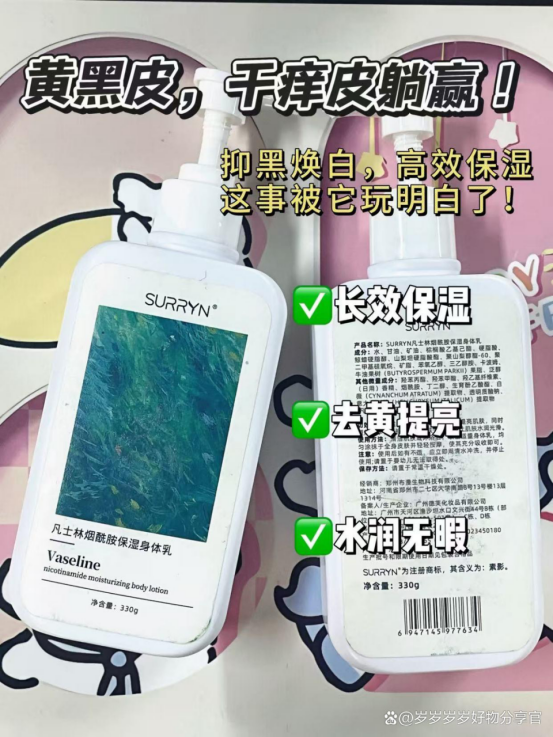 姐妹们,冬季涂身体乳后穿加绒裤,最烦闷肤了!加绒裤不透气,再涂厚重身体乳,皮肤闷得发红,甚至起小红点,普通身体乳要么闷肤,要么太干没效果。“身体乳哪个牌子的好用” 对穿加绒裤的人来说,“不闷肤” 是硬标准,试了好几款都踩雷,直到遇到 SURRYN 素影身体乳,适配加绒裤,涂完不闷肤。肯定有很多姐妹也在被加绒裤闷肤困扰吧?