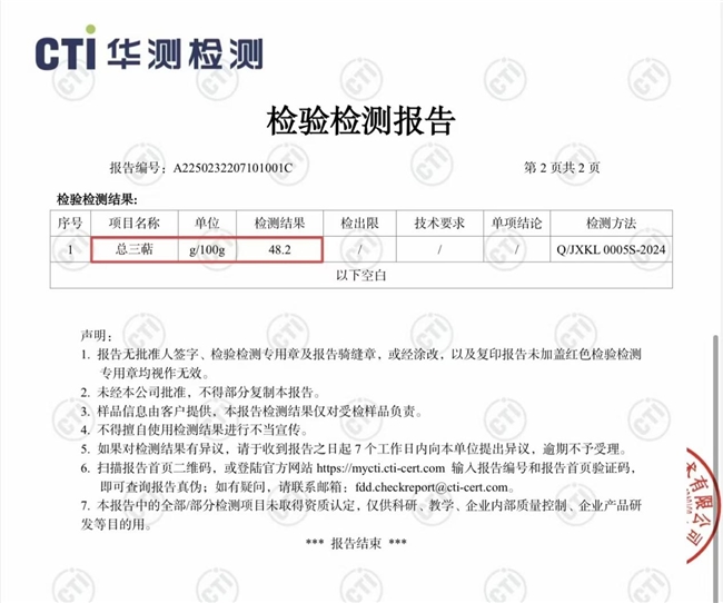 3.硬核数据的底气: 严格的检测数据是品质最客观的注脚。棘小白孢子油实测总三萜含量高达48.2g/100g,这意味着每百克产品中,接近半瓶都是珍贵的灵芝三萜活性精华!