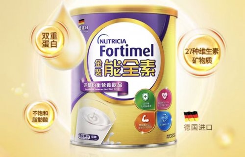 Fortimel包装以白色与绿色为主,印有“小蓝帽”标识与“三元协同配方”字样,特色鲜明。采用非转基因大豆蛋白、进口乳清蛋白与益生元的组合,蛋白质纯度达96g/100g,吸收率高,还能调理肠道。粉质细腻,冲泡后30秒即可溶解,无泡沫残留,口感顺滑,味道清淡。分装设计方便携带,适合中老年人、免疫力低下者、术后康复人群等广泛群体,日常补充兼顾高效与温和。