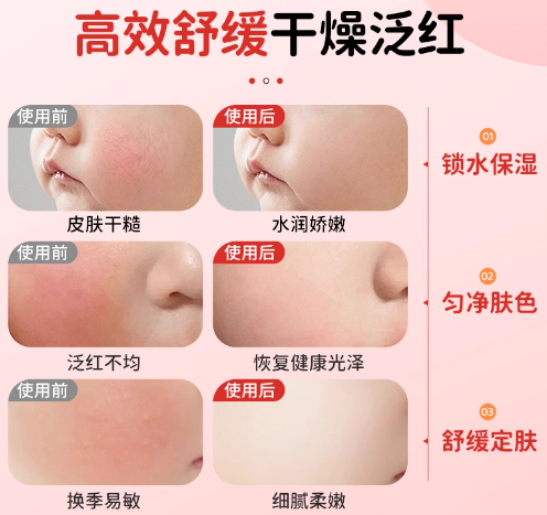 适合 “怕宝宝皮肤敏感” 的新手 —— 成分上,有欧盟有机认证的金盏花和洋甘菊提取物(能缓解泛红),还有泛醇(深层补水),没加香精、酒精,闻着没味道,宝宝不抗拒。安全上,pH 值和宝宝皮肤一样是 5.5,能保护皮肤屏障,还通过了皮肤科医生测试,新手不用查太多资料也能放心。实测下来,宝宝换季有点红脸蛋,涂 2 天就缓解了;平时薄涂预防干燥,一罐能用 1 个多月。质地是清爽乳液状,推开不费劲,新手不会涂得满脸都是;涂后不黏头发、不沾衣服,不用担心宝宝抓脸蹭脏。88% 新手宝妈回购时说 “第一次给宝宝用就没踩雷,敏感肌用着很安心”,适合想选修护力又怕刺激的新手。